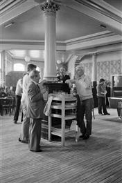 GB. England. Ashton-Under-Lyne. Yates's Wine Lodges. Although well priced in comparison to their competitors, these wine lodges acquired a distinctly dismal reputation with typical characteristics of a working class customer, elderly and often female with overdone make-up. But the unspoilt, original wine lodges, with their high ceilings and bare floorboards, their pillars and rails for propping yourself upright, seem clearly designed for the determined and joyless business of taking the quickest route to oblivion. Peter Yates insisted that, in the interests of sobriety, food should be available throughout licensing hours and every lodge still boasts “something good to eat at any time of the day†(though it maybe often no more than the ubiquitous pork pie!). 1982
