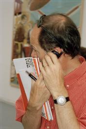ITALY. Venice. Venice Biennale. A man talks on his mobile phone. 2001.