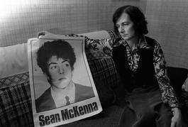The mother of one of the first prisoners to go on hunger strike, with a picture of her son, Sean McKENNA.