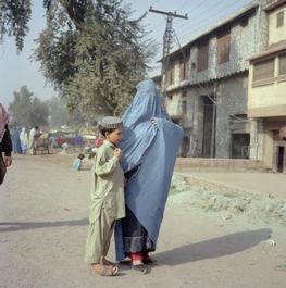 PAKISTAN Peshawar.September 2001. The International Media. Afghan refugees. After twenty years of war in Afghanistan, Pakistan has had to cope with an estimated two and a half million refugees over this period. The present war has pushed many more into Peshawar, who have come to stay with relatives or make rudimentary homes dotted around the city.