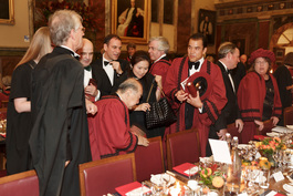 GB. England. Oxford. Trinity College. Chancellor's Court. The annual meeting of the Chancellor’s Court of Benefactors. Only individuals or organisations who donate more than £1.5 million are eligible to become members of the court, who are admitted in a special ceremony, presided by the Chancellor. 2014.