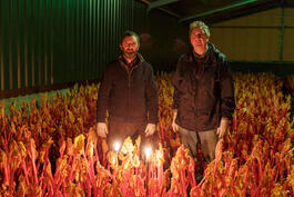 GB. England. West Yorkshire. Wakefield. Newton Bro's, Neil on left with Edward. The Rhubarb Triangle. 2015.