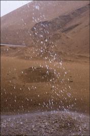 China. Mongolia. Xiangshawan is a holiday resort, Mongolian theme park on the edge of the Gobi desert for Chinese tourists. Water pours off the roof of a resort building housing restaurants. 2013