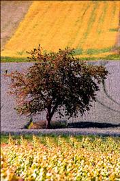 Europe. France. Champagne. Vineyards and a lavender field near Epernay.