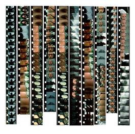 G.B. ENGLAND. London. 'MOBY...The Movie', Peter Marlow used a Super-8 movie camera during this portrait shoot to photograph the American Rockstar Moby, in London to promote his new album '18'. His previous album 'Play' sold over ten million copies worldwide. Photographed in the garden of the Hempel Hotel. 2002. Stills from the Super-8 film have been blown-up to create this unusual selection of images