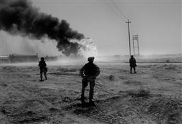 IRAQ. Rumaila. US troops survey burning oil fields in south-west...