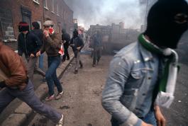 Riots following Bobby SANDS' death after a 66 day hunger strike.