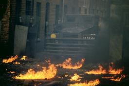 G.B. Northern Ireland. Londonderry. Riots following the deaths of two Catholic teenagers who were accidentally killed by British Army troops who drove into a group of rioters hurling petrol bombs. The rioters throw rocks and petrol bombs and the police respond with plastic bullets. 1981.