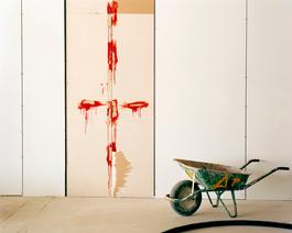 Office construction with bleeding cross.