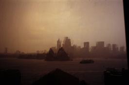 AUSTRALIA. Sydney. View from my window, the ever changing Sydney city skyline as seen from Kirribilli. Rain on the window at sunset. 2002.