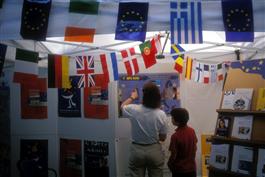 FRANCE. Strasbourg. Europe Day in Strasbourg. Open day of the Parliament with visitors from the general public eager for information on what the New Europe will be like. 21 May 2001