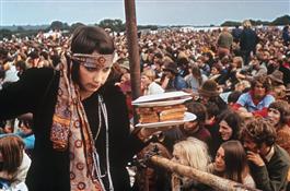 GB. ENGLAND. Isle of Wight Festival. Getting food often means a long wait. Cooking your own is much better, some get fancy and others settle for sandwiches. 1969.