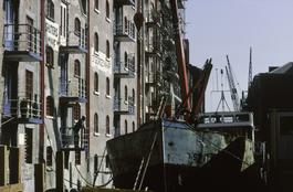 G.B. ENGLAND. London. The regeneration of the London Docklands. Shad Thames, south of Tower Bridge and adjacent to Butlers Wharf, presently being converted to upmarket flats and houses, these warehouses were part of the spice area of the Docklands. They still inside have the lingering smell of tumeric in the air. 1987.