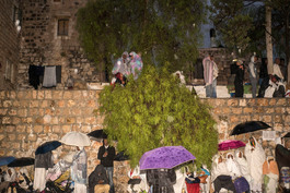 ISRAEL. Jerusalem. 2015. Ethiopian Orthodox celebrate Easter Holy Week atop the Church of the Holy Sepulchre.