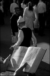 UKRAINE. Uman. Jews celebrate Rosh Hashana (the religious New Year) by a pilgrimage on the tomb of Rabbi NACHMAN of Breslov. Pages of the Torah studied by a pilgrim in front of the rabbi's tomb.