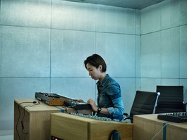 Participant Kinuko Hiramatsu aka Sapphire Slows working in a studio of la Gaité Lyrique during the 2015 RBMA in Paris.