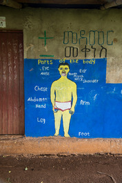 ETHIOPIA. Omo Valley, 2013. A human anatomy diagram painted on a wall.