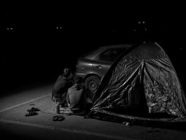GREECE. Lesbos. 2015. Refugees and migrants wait for their turn to board the ship that will take them to mainland Greece.