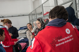 SLOVENIA, 6/11 2015. Refugees and migrants receive support from Slovenian Red Cross workers at a camp on the border of Slovenia and Austria.