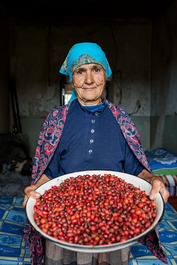 Armenia. Tavush. 2013. Emma lives in Ayrum in northern Armenia where the communities relies on growing fruit to earn a living. Some families have land to grow their own fruit, others, like Emma rely on picking wild berries in the forest.