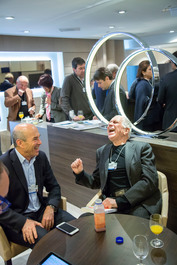 Ian Goldin, Professor of Globalization and Development, and Director, Oxford Martin School, University of Oxford, United Kingdom and Edmund Phelps, Director, The Center on Capitalism and Society, Columbia University, USA, having a laugh. SWITZERLAND. Davos. World Economic Forum Annual Meeting. 2016