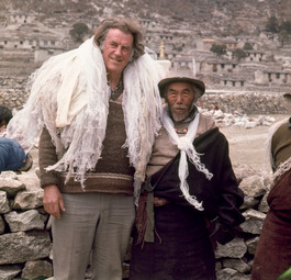 NEPAL. Kathmandu. 1976. Edmund Hillary standing with fur around...