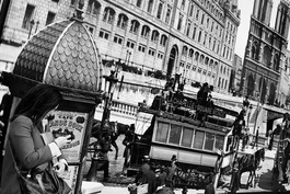 FRANCE. Paris. 75004. Place de l'Hôtel de Ville, with old view of Notre Dame. 2015.