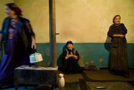 TURKMENISTAN. Jerbent. 2007. Women gather for tea in a one-room home in the oasis town of Jerbent in Turkmenistan's Karakum desert.