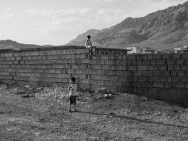 Children at the foothill of the Qandil Mountains in the town of Ranya.