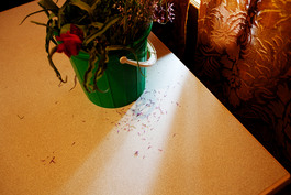 TURKMENISTAN. Mary. 2009. A bucket of tulips blooms near a window...