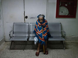 VENEZUELA. Caracas, 2019. A patient waits for doctor in a corridor...