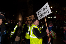 UK. 2019. London. Protestors outside the Houses of Parliament...