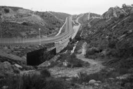 The wall through the mountains running from the Pacific Ocean along the US/Mexico border.