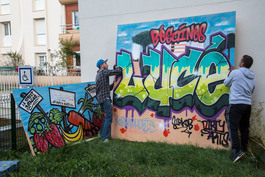 France. Chartres (Lucé). PEP. Centre social Clos Margis. Cité de Béguines. Dirty Art spray painting. 2017