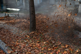 France. Paris. 2018. The cemetery of Père Lachaise. Sweeping leaves.