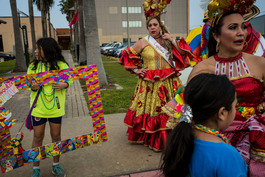 USA. Galveston, TX. 2017. Mardi Gras celebration. Dancers from the Colombian city of Barranquilla