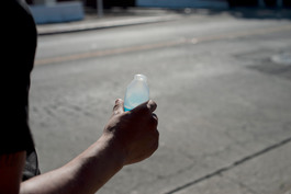 USA. Vallejo, CA. 2016. Latrell bought a drink from the food truck outside Vallejo High School.