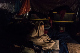 USA. Standing Rock, North Dakota. December 5th, 2016. Youth activists at the Oceti Sakowin Camp (known popularly as Standing Rock) set up across the Missouri River, the proposed crossing point for the Dakota Access Pipeline. It was established by activists (known as Water Protectors) intent on disrupting the passage of the pipeline in order to protect the local water supply and sacred burial grounds, as well as ensure that treaties made between the Federal government and Standing Rock Sioux are honored.