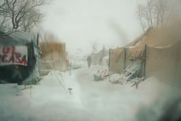 USA. Standing Rock, North Dakota. December 5th, 2016. The Oceti Sakowin Camp (known popularly as Standing Rock) during a blizzard. Set up across the Missouri River, the proposed crossing point for the Dakota Access Pipeline, it was established by activists (known as Water Protectors) intent on disrupting the passage of the pipeline in order to protect the local water supply and sacred burial grounds, as well as ensure that treaties made between the Federal government and Standing Rock Sioux are honored.