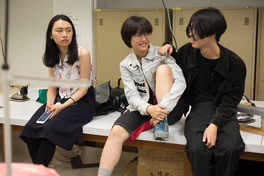 Taiwan. Taipei. 2017. Students at the prestigious Shih Chien University fashion design course prepare to show their designs.