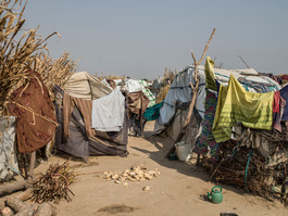 NIGERIA. Maiduguri. 2017. A view of the Muna camp for displaced persons. Continued violence in the northeast has forced residents to flee their villages, and many of them have come to the Maiduguri area seeking safety.