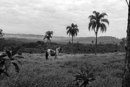 A horse on a field inside the Colonia basin, a recently confirmed impact crater located in the municipality of São Paulo, Brazil. The basin, a round bowl-shaped depression with a diameter of about 3.6 km, was formed between 1 million to 20 million years ago, in crystalline basement rocks 600 to 700 millions of years old. It is partially filled by turfaceous sediment with maximum depth of 275m, which provides a precious record of ancient environment.