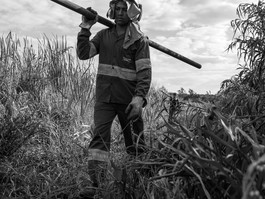 A crew member from a Brazilian drilling company working for a group of scientists sponsored by the BNP Paribas Foundation, carries a tube to a drilling site inside the Colonia basin, a recently confirmed impact crater located in the municipality of São Paulo, Brazil.