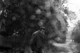 An indigenous Guarani man walks under the rain in the Tenonde Pora Guarani community.