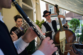POLAND. Krakow / Cracow. Old jewish district of Kazimierz. May 2014. Klezmer music band.