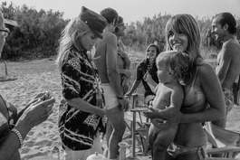France. St. Tropez. 1968. Jane Fonda with Roger Vadim and friends....