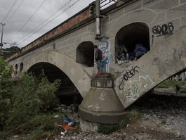 ITALY. Ventimiglia, 26 April 2017. Migrants in the Roja river valley. Ventimiglia is a small town at the border between Italy and France.