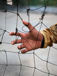 THAILAND. Bangkok. February 10, 2018. Street Sepak Takraw players during a game on a court under an overpass in central Bangkok.