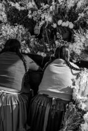 BOLIVIA. Sacaba. December 7, 2019. Visitors pay their respects at a makeshift memorial in Sacaba, on the outskirts of Cochabamba, the site of deadly clashes between pro-Morales protestors and security forces in which at least 8 protesters were killed.