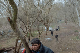Turkey, Edirne. 2020. Muhammed fled from Syria three years ago and was living in Turkish city Mersin. Thousands of migrants wait in buffer zone between Turkish Greek border at Pazarkule border gate in Edirne to cross the border into Greece.